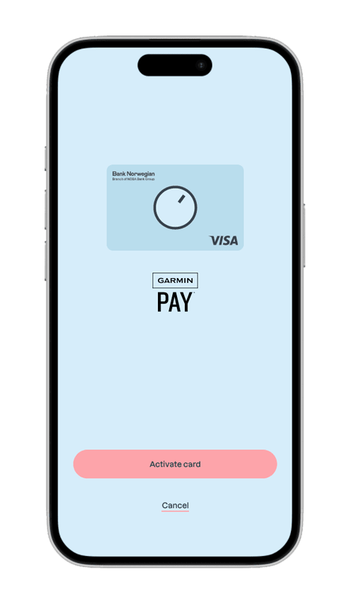 Gå till Garmin Pay i appen och lägg in ditt Bank Norwegian kreditkort.